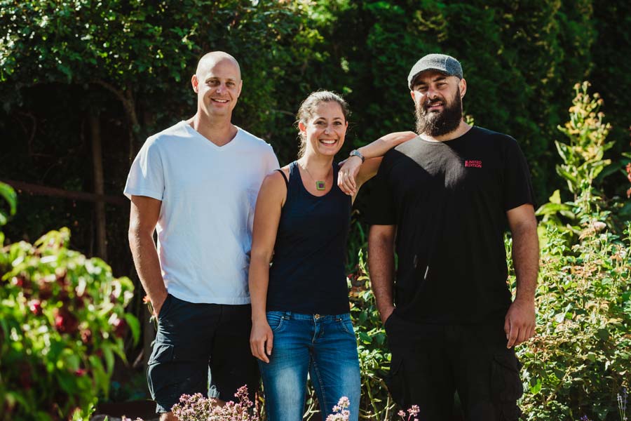 Manuel und Michael sind die Männer für Anbau, Ernte, Veredelung und Verpackung. Marion ist die Frau für Verwaltung, Verkauf und Hofführungen.